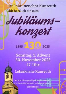 Wir laden euch herzlich zu unserem Jubiläumskonzert am 30.11.2025 um 17 Uhr in der Lukaskirche Kunreuth ein. Euch erwartet ein interessantes Hörerlebnis mit z.T. ungewohnten Harmonien und Rhythmen. Wir spannen einen Bogen von klassischer Posaunenchorliteratur über Spirituals, Rock-Medleys, Variationen von Weihnachtsliedern bis hin zu besinnlichen Stücken.