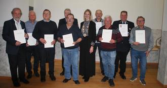 Zum jährlichen Neujahrsempfang lud Erste Bürgermeisterin Simmerlein im Namen der Gemeinde Pinzberg ein und nahm dies zum Anlass ehrenamtlich engagierte Bürger*innen auszuzeichnen. Als Zeichen der Anerkennung und der Wertschätzung für die geleistete ehrenamtliche Tätigkeit wurden Medaillen in bronze, silber und gold verliehen. Die goldene Medaille erhielten Reinhardt Glauber, Manfred Seeber, Johannes Schmitt, Wolfgang Hack, Baptist Götz, Jürgen Haller, Dieter Hofmann, Werner Greif und Reinhard Seeber.