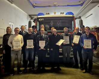 Im Rahmen der anschließenden Jahreshauptversammlung wurden zudem einige verdiente Mitglieder für ihre langjährige Dienstzeit und ihren besonderen Einsatz geehrt. Diese Auszeichnungen unterstreichen die Wertschätzung und den hohen Stellenwert des Ehrenamts innerhalb der Feuerwehr.