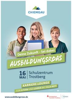 Am 16. Mai 2025 findet im Schulzentrum Trostberg die diesjährige Ausbildungsroas statt. Rund 120 regionale Betriebe, Berufs- und Hochschulen stellen ihre Ausbildungsangebote vor – von Handwerk bis Industrie. Die Messe richtet sich an Schülerinnen und Schüler, Eltern sowie Quer- und Wiedereinsteiger und bietet wertvolle Einblicke in berufliche Perspektiven im Chiemgau. Veranstalter ist die Chiemgau GmbH in Kooperation mit dem Wirtschaftsverband Landkreis Traunstein e.V.