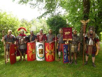 Laut wurde es, als die Römer der „Legio IX Hispana“ in historischer Ausrüstung nach den lateinischen Kommandos des Centurios über den Schloßhof und durch den Markt marschierten.
