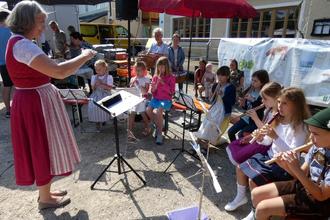 Die Blockflötenkinder von Annemarie Wiesholler spielten beim Bauernmarkt zur Irisblüte auf und sorgten für beste Unterhaltung. Applaus und viel Lob waren ihnen sicher.