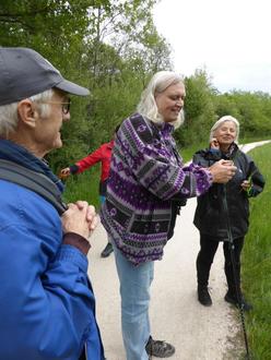 Eine kleine, aber sehr interessierte Gruppe von Naturliebhabern folgte der Einladung des Fremdenverkehrsvereins Grabenstätt e.V. zu einer Wanderung zur Irisblüte mit Gärtnermeisterin und Ornithologin Tina Bleifuß. Bereits auf den ersten Metern gab es viel zu sehen und zu hören das wunderschön purpurrot blühende breitblättrige Knabenkraut, eine von 46 einheimischen Orchideenarten, verschiedene Seggenarten, aber auch den gelb blühenden gewöhnlichen Gilbweiderich, und den zierlichen Hasenklee. Dazwischen ließen der im Chiemgau seltene Karmingimpel und der farbenfrohe Pirol die je eigenen markanten Rufe hören, die sich zwischen die Stimmen von Mönchsgrasmücke, Zilpzalp und das Geschnattere der Graugänse mischte. Frau Bleifuß zeigte den Unterschied zwischen Auwald und Erlenbruchwald auf und erklärte, wie sich die Vegetation auf kalkhaltigen Böden von der auf sauren Böden unterscheidet. Die artenreichen Niedermoore rund um den Chiemsee sind einfach einzigartig.