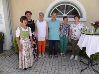 „Das Bild zeigt von links nach rechts: Gastgeberin Resi Schmid, „Beim Most’l“, Frau Müller, Frau Gensheimer sowie Herrn Spohnholz und Frau Würth mit Gastgeberin Roswitha Hofmann, „Berger Hof“