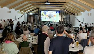 „Völlig losgelöst von der Erde…“, wie es im EM-Song von Peter Schilling heißt, feierten die großen und kleinen Fans im neuen Grabenstätter Pfarrsaal den 5:1-Sieg der deutschen Nationalmannschaft im Eröffnungsspiel der Fußball-Europameisterschaft gegen Schottland. Das von der Pfarrgemeinde Grabenstätt organisierte Public-Viewing war mit über 100 Besuchern, darunter Einheimische, Urlauber und viele Familien mit Kindern ein voller Erfolg. Genauso wichtig wie der Sieg der deutschen Mannschaft war dem Pfarrgemeinderat, dass das Event so gut angenommen wurde. So könne das „Fußball-Märchen 2024“ ruhig weitergehen, war der allgemeine Tenor nach dem Schlusspfiff. Nur beim Tipp-Spiel gibt es noch etwas Steigerungspotential. „Den 5:1 Sieg hatte leider kein Fußballfan für möglich gehalten, aber letztendlich konnten sich alle Besucher mit Popcorn, Wienern und Snacks trösten“, so der Pfarrgemeinderat Alfons Kritten mit einem Augenzwinkern.
