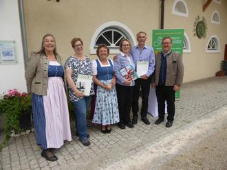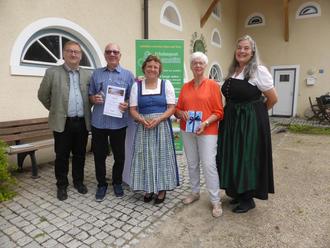 das Foto zeigt von links nach rechts: 1. Bürgermeister Gerhard Wirnshofer, Gerd Keller, Irmi Schröder, Christine Keller und Susanne Pfliegl von der Tourist-Information