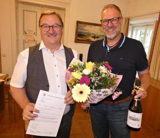 Herzlich gratulierte der Erste Bürgermeister Gerhard Wirnshofer seinem Stellvertreter Andreas Danzer zur Wahl zum neuen Traunsteiner Landrat. Durch die Wahl zum Landrat scheidet Herr Danzer nun nach über 17 Jahren aus dem Grabenstätter Gemeinderat aus.