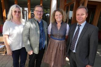 Am letzten Schultag ist die Grabenstätter Grundschulrektorin Kerstin Münch (Zweite von rechts) nach drei Jahren verabschiedet worden. Ihre Stellvertreterin Birgit Gebert-Schwarm, Schulamtsdirektor Clemens Gruber (rechts) und Bürgermeister Gerhard Wirnshofer bedankten sich bei ihr für ihr großes Engagement für die ganze Schulfamilie.
