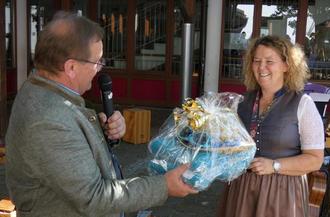 Bürgermeister Gerhard Wirnshofer bei der Übergabe und Dankesrede an Frau Kerstin Münch.