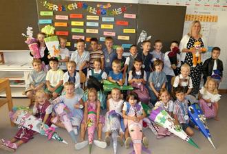 27 Erstklässler, darunter 16 Buben und elf Mädchen, hat Schulleiterin Kerstin Münch am ersten Schultag an der Grundschule Grabenstätt begrüßen können. „Ich wünsche euch von Herzen einen Platz zum Wohlfühlen und den bekommt ihr hier bei uns“, versicherte sie. Die Schulfamilie bereitete den Abc-Schützen, die erstmals seit langem nur eine erste Klasse bilden, einen begeisternden Empfang. Bevor es mit den prall gefüllten bunten Schultüten und Schulhund Julchen ins Klassenzimmer ging, hatte es im Schulhof eine kleine Begrüßungsfeier gegeben. „Endlich geht die Schule los“, sprach Klassenleiterin und stellvertretende Schulleiterin Birgit Gebert-Schwarm dabei ihren Schützlingen aus der Seele, während diese mit ihren Eltern, Großeltern, Tanten, Onkeln und der Sonne um die Wette strahlten. „Alles Gute“ wünschte ihnen auch Bürgermeister Gerhard Wirnshofer. Nachdem die 2a und 2b zu Musik der 3a das Schullied angestimmt hatten, gaben die letztjährigen Erstklässler noch ein Gedicht und ein Lied zum Besten. Zu den Höhepunkten zählte die Übergabe der Begrüßungsamulette an die Erstklässler. Auf die Frage, auf was er sich am meisten freue, meinte ein Abc-Schütze im Klassenzimmer: „Aufs Schultüte aufmachen“. Eine weitere Erstklässlerin konnte es gar nicht erwarten, neue Freunde zu finden. Anschließend durften sie alle ihre Schultüte malen und später auch öffnen. Im Schulhof bewirtete der Elternbeirat um Heide Wimmer. Fördervereinsvorsitzende Waltraud Hübner konnte sich zum Schuljahresbeginn gleich über einige Neumitglieder freuen. Neu ist auch die Bundesfreiwilligendienstleistende (Bufdi) Emma Berg. Als Abiturientin und angehende Lehramtsstudentin hat sie sich dazu entschlossen, dem Lehrerkollegium ein Schuljahr lang unter die Arme zu greifen, sei es bei der Vermittlung und Vertiefung von Mathematik- und Deutschkenntnissen oder bei der Projektarbeit. Bis 14 Uhr steht sie täglich als zusätzliche pädagogische Kraft zur Verfügung. Die Kosten übernimmt die Gemeinde Grabenstätt.