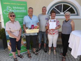 Bei einer kleinen Feierstunde in der Tourist-Information dankte die erste Vorsitzende des Verkehrsvereins, Frau Bärbel Schuster, den Stammgästen für ihre Treue und Susanne Pfliegl von der Tourist-Information überreichte einen Geschenkkorb mit regionalen Schmankerln als Dank der Gemeinde.