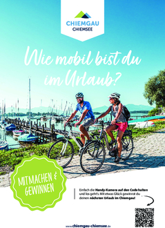 Zum Abschluss des Förderprojekts „Rad-Begleitinfrastruktur“ steht noch eine wichtige gemeinsame Aufgabe an: die Befragung unserer Gäste zu ihrer Mobilität im Urlaub. Bitte machen Sie Ihre Gäste auf die Umfrage aufmerksam und bitten sie um ihre Teilnahme - es gibt einen schönen Preis zu gewinnen! Hier geht es zur Umfrage: https://dwif.survalyzer.eu/Chiemgau_Radmobilitaet (online bis November)