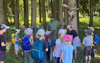 Bei strahlendem Sonnenschein haben rund 25 Kinder mit dem Jäger Uli Baur von Gut Sossau die angrenzenden Wiesen und den Wald erkundet. In herrlicher Natur gab es viel zu entdecken und es wurde nie langweilig. So bestaunten die jungen Teilnehmer auch Tierpräparate von einem Turmfalken, Mäusebussard, Sperber, Marder, Waldkauz, Dachs, Fasan, Fischreiher, Murmeltier und Auerhahn und bewiesen im Frage-Antwort-Spiel, dass sie schon einige Vorkenntnisse hatten. Ihr Wissen über die Wald- und Wiesenbewohner ist nun aber noch deutlich größer geworden. Darüber hinaus durften die Kinder Geweihe von Reh und Hirsch suchen und bestimmen. „Tiere, die auf dem Boden leben haben sehr viele Feinde und besonders Mäuse sind immer großer Gefahr ausgesetzt“, so Baur. Ein Adler, der überwiegend in der Luft lebe, habe hingegen so gut wie keine Feinde. Die mutigen Kinder erklommen auch noch einen Jägerstand und bestaunten eine Vielzahl von „echten“ Störchen, welche auf den frisch gemähten Wiesen in unmittelbarer Nähe nach Nahrung suchten. Nach einer Stärkung machte man zum Abschluss noch bei den vielen Tieren auf dem Hof Station. Besser hätte der ereignisreiche und spannende Nachmittag nicht ausklingen können.