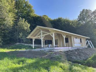 Einstimmig hat der Gemeinderat in seiner letzten Sitzung der Vereinbarung zwischen der Gemeinde und der Katholischen Kirchenstiftung St. Maximilian über die freiwillige Betriebskostenförderung (Defizitvereinbarung) für den Waldkindergarten in Grabenstätt zugestimmt. Am künftigen Standort in einer kleinen Lichtung im nördlichen Eichbergwald sind nun auch die Baufortschritte deutlich zu erkennen. Ende September wurde von den Zimmerern die hölzerne Schutzhütte auf einer Betonplatte aufgestellt. Leider wird es noch einmal eine Arbeitspause geben, weil diverse Bauelemente noch etwas Lieferzeit haben.