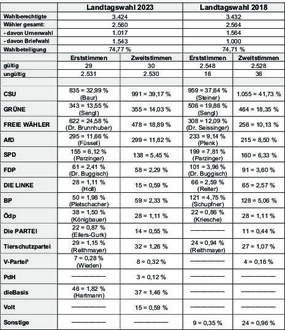 Eine sehr gute Wahlbeteiligung konnte wieder bei der zurückliegenden Landtags- und Bezirkswahl verzeichnet werden. Bezogen auf die Landtagswahl gaben in unserer Gemeinde von 3.424 Wahlberechtigten insgesamt 2.560 Bürgerinnen und Bürger ihre Stimme ab. Dies entspricht 74,77 %, fast genau so viele Wähler wie in 2018. Die Wahlbeteiligung im Stimmkreis Traunstein lag bei 73,21 %. Eine erneute Steigerung gab es auch wieder bei den Briefwählern. Die Briefwahlbezirke unserer Gemeinde hatten zusammen 1.563 Wahlbriefe auszuwerten, das sind über 500 mehr als bei der letzten Landtagswahl.
