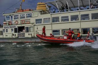 Zur fünfzigsten Chiemsee-Schifffahrt luden die südostbayerischen BRK-Kreisverbände aus Mühldorf, Altötting, Rosenheim, Ebersberg und Traunstein am vergangenen Samstag ein. Über zweihundert Gäste waren dem Ruf zur Kreuzfahrt auf dem Bayerischen Meer gefolgt. Sie erlebten einen spätsommerlichen Traum Tag, dessen stahlblauer Himmel sich erst bei Rückkehr nach Prien leicht mit Wolken überzog. Wie immer bei diesen Fahrten sorgten die Einsatzkräfte der BRK Wasserwacht Stationen rund um den Chiemsee mit ihren leistungsstarken Booten für die Begleitung des Ausflugsschiffes. Dabei demonstrierten sie spannende Manöver, wie sie im Einsatz bei der Rettung in „See-not“ geratener Wassersportler nötig sind. So bot nicht nur die Traumlandschaft der Voralpen bei gleißendem Spiegeln der Sonne auf den Wellen den Mitfahrenden eine malerische Traumkulisse. Es war auch für Action auf dem Wasser gesorgt. An Bord der Edeltraud sorgte musikalische Live Musik für beschwingtes Vergnügen bei den Senioren und Menschen mit einer Behinderung. Für die Gäste der Tagestour mit Verpflegung war das wieder eine runde Sache. Seit nunmehr fünf Jahrzehnten stellt die Reederei-Familie Feßler dem BRK führ die Rundfahrt ein Ausflugsschiff kostenlos zur Verfügung.