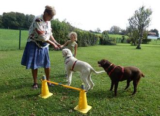 Viel Spaß hatten die Kinder mit ihren vierbeinigen Freunden beim Grabenstätter Kinderferienprogramm „Die Sprache der Hunde“ von und mit Hunde-Expertin Margot Schwarz in Oberaschau. Die Hunde Chico und Emil waren ähnlich motiviert wie die jungen Teilnehmer. Der weiße Hund ist der Emil...