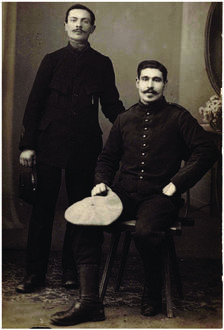 Links ist Paul Didelot und rechts Pierre Duez zu sehen. Beide waren in der frz. Festung Manonviller stationiert und wurden dort am 27. August 1914 von den bayerischen Truppen gefangen genommen. 2016 waren sie dann in Grabenstätt.