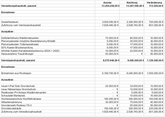In seiner Sitzung vom 10.11.2025 hat sich der gemeindliche Finanz- und Haushaltsausschuss mit dem Nachtragshaushalt 2025 intensiv beschäftigt und letztlich dem Gemeinderat empfohlen, die Nachtragshaushaltssatzung entsprechend zu verabschieden.