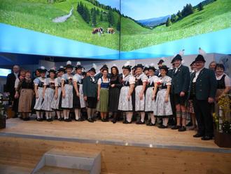 Organisiert vom GTEV „Chiemgauer“ und unterstützt von der Gemeinde Grabenstätt und vom Fremdenverkehrsverein Grabenstätt e.V. reisten die Aktiven, die Vorstandschaft und Ausschussmitglieder des Trachtenvereins in die Bundeshauptstadt, um Grabenstätt und bayerisches Brauchtum auf der „Internationalen Grünen Woche Berlin“ zu präsentieren. Bürgermeister Gerhard Wirnshofer mit Gemahlin und Altbürgermeister Georg Schützinger ließen es sich nicht nehmen, die Trachtler zu begleiten. Die „Grüne Woche“ gilt als die international wichtigste Messe für Ernährungswirtschaft, Landwirtschaft und Gartenbau und richtet sich sowohl an Fachbesucher als auch an das allgemeine Publikum. Am Eröffnungstag fuhr die Grabenstätter Delegation bereits früh morgens zum Messegelände, denn noch vor dem Auftritt der aktiven Trachtler auf der Bühne der Bayernhalle standen der Fototermin mit der bayerischen Landwirtschaftsministerin Michaela Kaniber und das O’zapfn auf dem Programm. Mit Messebeginn füllte sich die Bayernhalle schnell mit Besuchern, die dichtgedrängt standen, um die Trachtentänze und Schuhplattler anzuschauen und begeistert mit den Handys zu filmen und zu fotografieren. Die ausgelassene und fröhliche Stimmung nutzte die Grabenstätter Delegation mit Susanne Pfliegl von der Tourist-Information, um eigens gestaltete Panorama-Ansichtskarten an die Messebesucher zu verteilen und damit auf das Urlaubsziel Grabenstätt aufmerksam zu machen. Die Werbekarten zeigten eine Luftaufnahme von Grabenstätt mit Tüttensee, Chiemsee und den Chiemgauer Bergen und waren zudem mit einem QR-Code bedruckt, der zu einem Gewinnspiel auf der Grabenstätter Internetseite führte. Einen Kurzurlaub in Grabenstätt im Wert von 200,00 € hatte die Tourist-Information dafür als Gewinn ausgelobt.