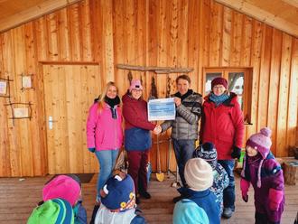 Am vergangenen Freitag konnte dem Verwaltungsleiter Herrn Wimmer, der Leitung Frau Henseleit und dem engagierten Team des Waldndergartens,vertreten durch Frau Lukas eine Spende in Höhe von 408,60 EUR überreicht werden. Dieser stolze Betrag kam durch eine kreative Aktion zustande: Frau Jungbeck, Mutter eines Kindes des Waldkindergartens, hatte selbst gestaltete Holzengel angeboten und diese gegen einen frei wählbaren Betrag abgegeben. Die Idee, Kunsthandwerk mit dem guten Zweck zu verbinden, stieß auf große Resonanz.