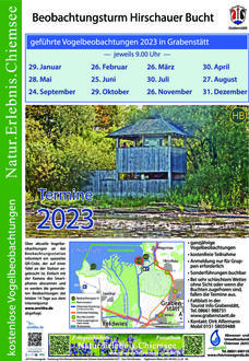 …sind ein interessantes, kostenloses Angebot – nicht nur für Ornithologen und Fotografen, sondern für alle Naturfreunde. Die Flyer mit allen Terminen an den Vogelbeobachtungstürmen rund um den Chiemsee liegen bei uns in der Tourist-Information auf. Vielleicht haben Sie Interesse, selbst einmal teilzunehmen? – der nächste Termin ist am Sonntag, 26.02.2023 um 9:00 Uhr am Naturbeobachtungsturm in der Hirschauer Bucht.