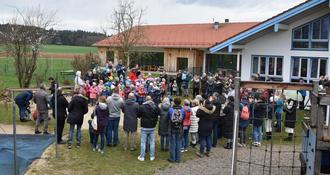Zu Beginn trafen wir uns im Garten, wo die Kinder ein Osterlied zum Besten gaben, bevor sich dann alle zusammen auf den Weg in den Wald machten, um Ostereier zu suchen. Alle waren ganz gespannt und konnten es kaum erwarten sich auf die Suche zu begeben.