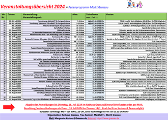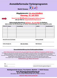 Das Programm und das Anmeldeformular sind in der Gemeindezeitung und unter www./grassau.de/ferienprogramm-grassau veröffentlicht.