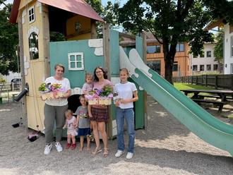 Bei strahlendem Sonnenschein trafen wir uns auf dem Grassauer Spielplatz, um uns von Janina Laska zu verabschieden. Seit Herbst letzten Jahres war sie, mit Franziska Egner, die Gruppenleiterin der Spiel- und Krabbelgruppe "Achentaler Hüpfer", die sich immer montags in dem Dorfsaal Mietenkam treffen. Als kleines Dankeschön wurden Blumenkörbchen von unserer Praktikantin Luna übergeben. Wir freuen uns, dass das regelmäßige Treffen der Familien weiterhin unter Leitung von Franziska Egner stattfindet.