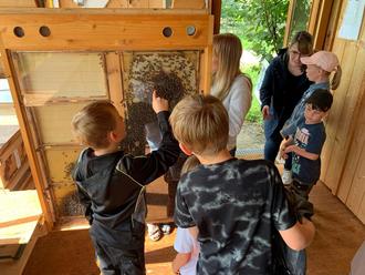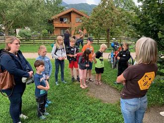 Am Freitag, den 2. August, trafen sich die Kinder gemeinsam mit Petra Reiter und ihrem Team am Bienenschau- und Lehrhaus. Dort gab es für die Kinder erst eine kleine Führung rund um das Schauhaus. Danach erzählte Petra Reiter den Kindern etwas über das Leben der Bienen und deren verschiedener Aufgaben. Im Anschluss bastelten die Kinder Bienen-Mobiles und durften den Honig verkosten. Am Ende präsentierten die Kinder ihren Eltern stolz ihre Basteleien und gingen glücklich nach Hause.