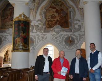 Die Grassauer Pfarrkirche ist mit unzähligen Fresken ausgeschmückt und die Darstellungen sind sehr gut zu erkennen. Dennoch kennt kaum jemand die Bedeutung dieser Bilder. Erich Kamm, geschichtlich versiert und sehr interessiert, hat sich der Beschreibung der barocken Fresken und der ihnen zugrundeliegenden theologischen Programme angenommen. Das mittlerweile sechste Achentaler Heft zur Heimatgeschichte mit dem Thema „Die Bildprogramme der barocken Fresken in der Grassauer Pfarrkirche Mariä Himmelfahrt“ stellten Autor Erich Kamm und Kulturbeauftragter wie Vorsitzender des Heimat- und Geschichtsvereins Dr. Hans Grabmüller dem Grassauer Bürgermeister Stefan Kattari und Pfarrer Andreas Horn vor. Die Marktgemeinde Grassau hatte sich wie die Pfarrei Mariä Himmelfahrt sowie der Verein Aktives Grassau und weitere im Heft genannte Sponsoren finanziell am Entstehen beteiligt.