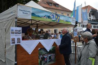 Bestens gelaunt zeigten sich die über 125 Marktstandbetreiber. Sie boten vor allem kreative Handwerkskunst, regional hergestellt und handgearbeitet an. Schönes für Haus und Garten, handgenähte Bekleidung, Schmuck, Hochprozentiges und vieles mehr lockten die interessierten Marktbesucher an. Die große Landmaschinenschau begeisterte nicht nur die Landwirte. Gut besucht war auch der kleine Jahrmarktsbereich mit Schiffschaukel und Losbuden. Einen immer größeren Bereich nimmt der Birn Pub Verein ein, der mit frisch gezapften Bier, Grillspezialitäten aber auch mit seiner „Sauverlosung“ lockte. Das Gewicht des kleinen, rosa Schweinchens, das sich in dem offenen Gehege sichtlich wohlfühlte, konnte geschätzt werden. Auch entlang der Marktstraße postierten sich die Händler mit ihrem abwechslungsreichen Angebot. Auf dem Rathausparkplatz versammelten sich die Foodtrucks und das Rote Kreuz offerierte Grillspezialitäten vor seinem Gebäude. Der Jugendtreff konnte besichtigt werden. Informationen zum neuen Car-Sharing Angebot der Gemeinde mit Präsentation des Fahrzeugs gab es vor dem Rathaus. Der Agenda Kunstkreis bot eine kleine Ausstellung und gleich daneben trat der Nachwuchs der Musikschule auf der kleinen Bühne auf. Musikalisch wurden die Marktbesucher auf dem Kirchplatz sowohl von der Grassauer Blasmusi wie auch der Rottauer Dorfmusik unterhalten, während sie kulinarisch vom Sportverein verwöhnt wurden. Auch an der Ortenburger Straße gab es musikalische Einlagen und die Trommlergruppe „Vem Comigo“ wechselte seinen Standort. An der Bahnhofstraße hatten die Geschäfte ebenfalls offen und lockten mit Angeboten. Der Flohmarktbereich am Raiffeisen Parkplatz war ebenfalls sehr gut besucht. Die kleinen Gäste waren von den Karussells an unterschiedlichen Plätzen begeistert, ließen sich Schminken oder durften bei der Christliche Gemeinde basteln.