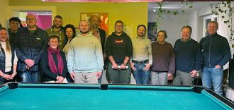 Förderverein Jugendtreff Achental Daniel Noichl (3. v. l.), Mechtild Faller-Obermeier, Margret Kastner. Daniel Illenseer, Olaf Gruß. Peter Enzmann (4. V. r.), Alice Gruß, Xaver Schreiner und Altbürgermeister Rudi Jantke