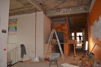 Der erste Bauabschnitt mit Entkernung des Mittelschulgebäudes ist in vollem Gange. Einige Wände wurden entfernt, neue eingefügt. Mit den Putzarbeiten befinde man sich bereits in der Zielgeraden und auch die Installation von Wasserleitungen, Heizleitungen und den Elektroleitungen werde mit Hochdruck angepackt, informierte Bürgermeister Stefan Kattari. Emsige Betriebsamkeit herrscht im gesamten Gebäude. Verschiedene Gewerke sind zeitgleich am arbeiten, was einiges an Koordination verlangt. Die Besichtigung ermöglichte aber zugleich bereits einen Eindruck, wie es einmal aussehen wird. Auffällig ist, dass der Eingang vom Birkenweg kommend verschwunden ist. Dieser wurde zugemauert, ein neuer Eingang, ohne steilen Treppenaufstieg ist nun gegenüber vom Pausenhof zu finden. Der neue Haupteingang wird in einem weiteren Bauabschnitt, wenn das neue Gebäude erstellt und damit auch die neue Aula gebaut wird, ebenerdig in die Schule führen. In den Bereich des alten Haupteingangs wird die Technik installiert. Kaum wiederzuerkennen ist die alte Aula. Nur mehr freie Wände sind hier zu sehen. Der vordere Teil wird abgemauert und in diesem Bereich wird eine Küche eingebaut, die für die Mensa gedacht ist. Der überwiegende Teil der alten Aula wird zur Mensa. Hier wird ein heller, freundlicher Raum geschaffen. Der Pausenverkauf zieht künftig in den Grundschulbereich um. Der Raum, der bislang als Pausenverkaufsraum genutzt wurde, steht als Raumreserve zur Verfügung. Architekt Volker Jürgens informierte, dass die Rohbauarbeiten beendet sind und die Baumeisterarbeiten ebenfalls in zwei Wochen abgeschlossen sein werden. Ähnlich verhält es sich mit den Putzarbeiten. Gearbeitet werde an Heizung, Lüftung und Sanitär und auch die Elektroarbeiten laufen. Die neuen Fenster für das Gebäude seien in der Fertigung und werden voraussichtlich Ende Mai geliefert. Mit den Zimmererarbeiten kann in zwei Wochen begonnen werden.