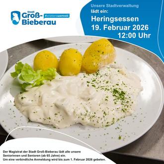 der Magistrat der Stadt Groß-Bieberau lädt alle unsere Seniorinnen und Senioren (ab 65 Jahre) herzlich zu unserem traditionellen Heringsessen im großen Saal im Bürgerzentrum ein.