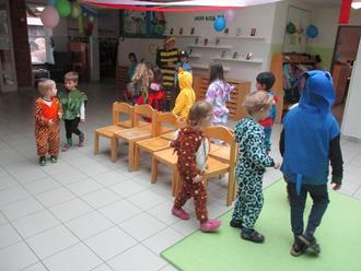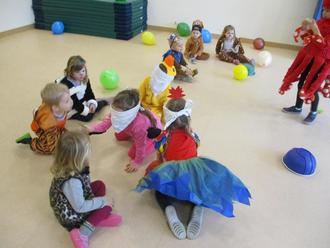 Morgens strömten plötzlich lauter kleine Tiger, Löwen, Einhörner, Drachen, Schildkröten und Seeungeheuer durch die Tür der Einrichtung. Die Kinder tobten herum, lachten und tanzten ausgelassen. Es gab viele Spiele wie Sackhüpfen und Topfschlagen, bei denen so ziemlich alle mitmachten. Zwischendurch wurde flott getanzt und Bewegungslieder mit Karnevalsmusik gespielt wie die Reise nach Jerusalem, Rucki/Zucki etc.