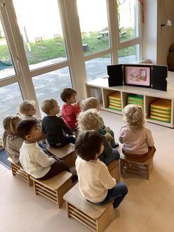 mit einer Erzählgeschichte vom kleinen Osterhasen, dem allerlei Missgeschicke passieren. Gespannt sitzen alle vor dem selbst gebastelten und gestaltetem Erzähltheater (Kamishibai) und erleben die spaßige Geschichte vom süßen Hasen. Mit großer Freude und Begeisterung sind die Kinder dabei! Wir wünschen allen eine schöne Osterzeit. Die Kinder der KiTa Mullewapp