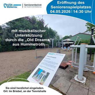 Der Wonnemonat Mai naht und mit ihm auch der Drang der Menschen sich im Freien zu bewegen. Der Seniorenbeirat lädt alle Bürger - nicht nur die der Generation 60+ - zur Saisoneröffnung auf den Seniorenspielplatz im Briebel an der Tennishalle ein. Am Montag, den 04. Mai ab 14:30 Uhr wird der Seniorenspielplatz für das Jahr 2026 eröffnet.