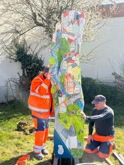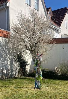 Dieses wunderschöne Kunstwerk hat nun dauerhaft seinen Platz in der Ortsmitte auf der grünen Fläche hinter dem Rathausparkplatz gefunden. Dort wurde es, nachdem Herr Lortz die Skulptur endgültig fertiggestellt hatte, aufgestellt.