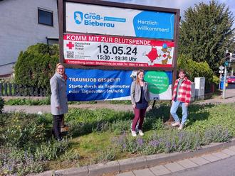 Frau Koch und Frau Lange vom Landkreis platzierten heute zusammen mit Bürgermeisterin Vogt das Aktionsbanner.