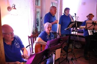 Die Kulturschmiede war bis auf den letzten Platz gefüllt. Die Gäste wurden vom Kulturverein bewirtet und starteten ab 19.00 Uhr mit der Laienband in das reichhaltige Schlagerprogramm. Bekannte Melodien wurden gemeinsam gesungen, es wurde geschunkelt und gelacht. Zu hören waren Evergreens von „Schöner Maid“ bis „Sierra Madre“ und „Ein bisschen Frieden“.