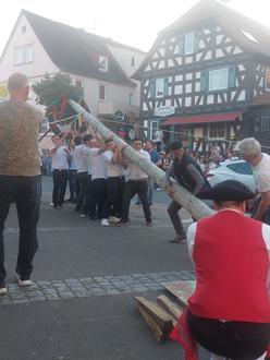 Traditionell wurde auch dieses Jahr am 30. April wieder ein Maibaum auf dem Marktplatz in Groß-Bieberau, als Zeichen des Frühlingserwachens aufgestellt. Das Bierfaß wurde mit Schwung von Bürgermeisterin Anja Vogt angestochen. Prost!