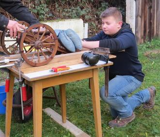 Das Laden und Zünden der Kanone wurde von Berthold Zagler übernommen, für das Ausrichten war der „Richtkanonier“ verantwortlich. So war der Schuss von Jan Scheinpflug auf der von Sabrina Jakull liebevoll gestalteten Scheibe, dem „Corona“ Virus am nächsten und er damit Gewinner des Tages.