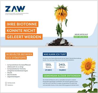 Bioabfälle dürfen in der Masse nicht über drei Prozent Fremdstoffanteil enthalten. Zu den Fremdstoffen gehören neben Kunststoffen auch Steine, Glas, Keramik und Metalle. Die Abfuhrunternehmen im Landkreis Darmstadt-Dieburg überprüfen den Inhalt der Biotonne per Sichtkontrolle sowie mit Detektoren. Ist die Tonne falsch befüllt, wird sie stehengelassen. Die Haushalte haben dann die Möglichkeit, die Störstoffe selbst auszusortieren, müssen dann allerdings die nächste turnusmäßige Leerung abwarten. Oder sie können bei ihrer Kommune eine Restmüll-Banderole erwerben und die Biotonne mit der Banderole versehen zum Restmüll-Termin entleeren lassen.