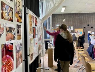 Am Donnerstagabend wurde die thematische Kunstausstellung „Essen!“ der diesjährigen E-Phase in der Aula eröffnet, mit anspruchsvollen, kreativen Beiträgen aus dem Bereich der Malerei, der Fotografie und der Objektkunst.