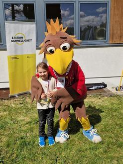 Hannah mit Shooty, dem Maskottchen der DSB Jugend