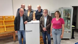 Der Ortsverein der SPD in Groß-Bieberau hat der Lebensmitteltheke des Vereins Diakoniezentrum Groß-Bieberau e.V. einen hochwertigen Gefrierschrank gespendet. Kürzlich erfolgte die offizielle Übergabe des Geräts. Der SPD Vorsitzende Axel Goldbach, sein Stellvertreter Bernd Führer und Beisitzer Rolf Schellhaas informierten sich vor Ort über die Arbeit der Lebensmitteltheke und konnten im Gespräch mit Vertretern der Initiative erfahren, dass das neue Gerät insbesondere aufgrund seiner hohen Energieeffizienz sehr willkommen ist, sind doch einige Kühlgeräte der Lebensmitteltheke mittlerweile sehr in die Jahre gekommen und belasten aufgrund der hohen Energiekosten das Budget der Lebensmitteltheke dauerhaft.