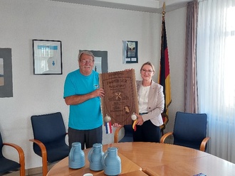 Der offizielle Teil des Besuchs der Amerikanischen Gästen durfte natürlich nicht fehlen. So trafen sich Vertreter der beiden Verschwisterungskomitees auf einen Kaffee mit Bürgermeisterin Anja Vogt. Raymond Famula, Initiator des Sister Cities Committee und parlamentarischer Vertreter aus Millstadt überreichte eine wunderschöne Holztafel auf der die 20-jährige Freundschaft der beiden Städten eingraviert wurde.