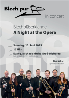 | 17.00 Uhr | Festliches Bläserkonzert mit „Blech pur“ in der Michaelskirche in Groß-Bieberau ‚A Night at the Opera‘ |