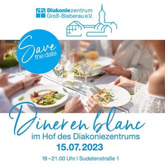 Zum zweiten Mal veranstaltet der Verein Diakoniezentrum Groß-Bieberau ein „Diner en blanc“ – am Samstag, dem 15.07. von 18:00 bis 21:00 Uhr laden wir Sie in das Diakoniezentrum ein, um ein Picknick „ganz in weiß“ zu begehen.